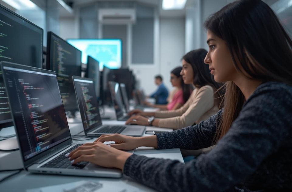 Students work on hands-on coding exercises and practical projects such as: